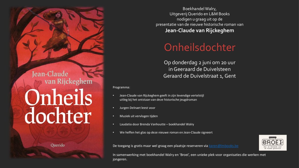 Maar terug naar mijn voorvader. Als ik aan een roman begin te schrijven doe ik dat meestal zonder een echt plan. Ik dacht dat het verhaal over Rikiwulf, meester van de wolven, zou gaan maar toen ik aan dit boek begon – twee jaar geleden – namen twee jonge vrouwen het verhaal meteen over. Ik ontdekte YRSA, een jonge Deense die dweept met haar heidense goden en gelooft dat alles voorbestemd is, dat iemands leven al vooraf is bepaald want het is geweven in een doek door drie oude vrouwtjes onder een boom. En ook ZUSTER JOB stond ineens voor mij. Een Zuster uit het Onze-Lieve-Vrouw klooster op de Blandijnheuvel in Gent. Zij wordt geschaakt door de Denen maar is fanatieker dan drie pausen bij elkaar en beweert dat ze de achterkleindochter is van Karel de Grote.