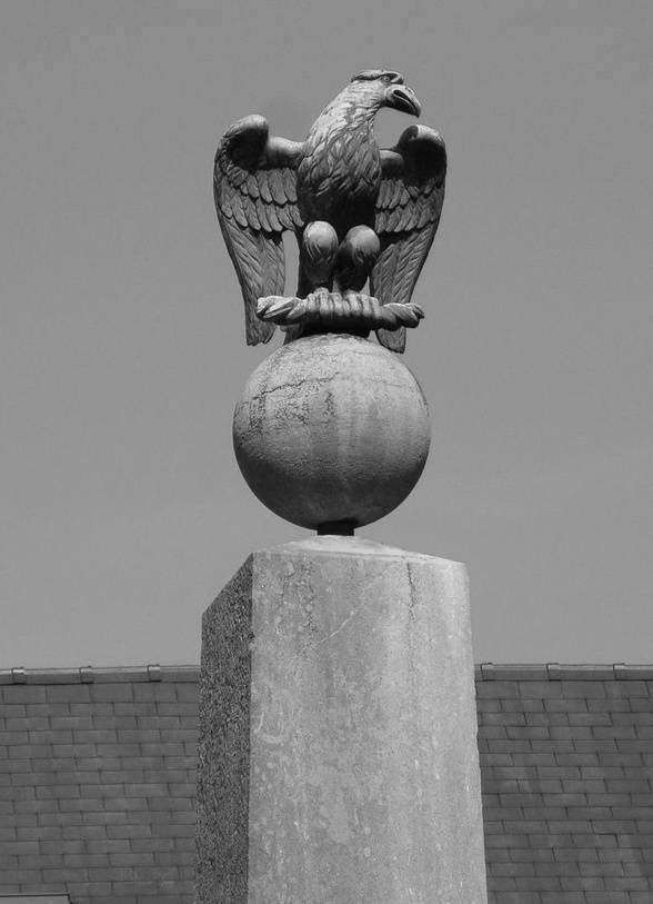 De Franse adelaar bovenop de pomp. Na de val van Napoleon moesten alle zaken die aan het keizerrijk herinnerden worden weggehaald. Maar de adelaar werd vergeten. (foto van Gent Geprent)