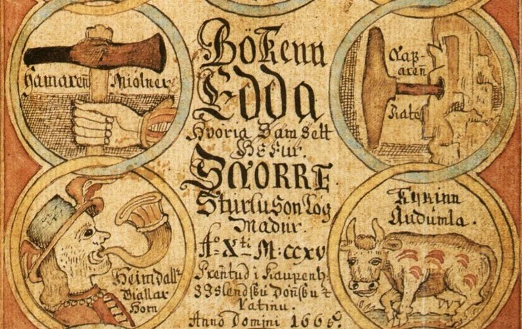 Ik leerde ook de Deense goden kennen wier verhalen pas in de 12de en 13de eeuw zijn opgetekend door de Ijslandse monnik Snorri Sturluson. Zijn boek heet de Edda, wat ‘grootmoeder’ betekent. De mythen werden eeuwenlang mondeling doorgegeven en de man die ze uiteindelijk neerschreef was een monnik. Zijn eerste bekommernis was in feite de Noordse en Germaanse dichtkunst van de ondergang te vrijwaren, maar hij interpreteerde de mythen vanuit het christendom, waardoor het heidense of zelfs duivelse karakter benadrukt werd.